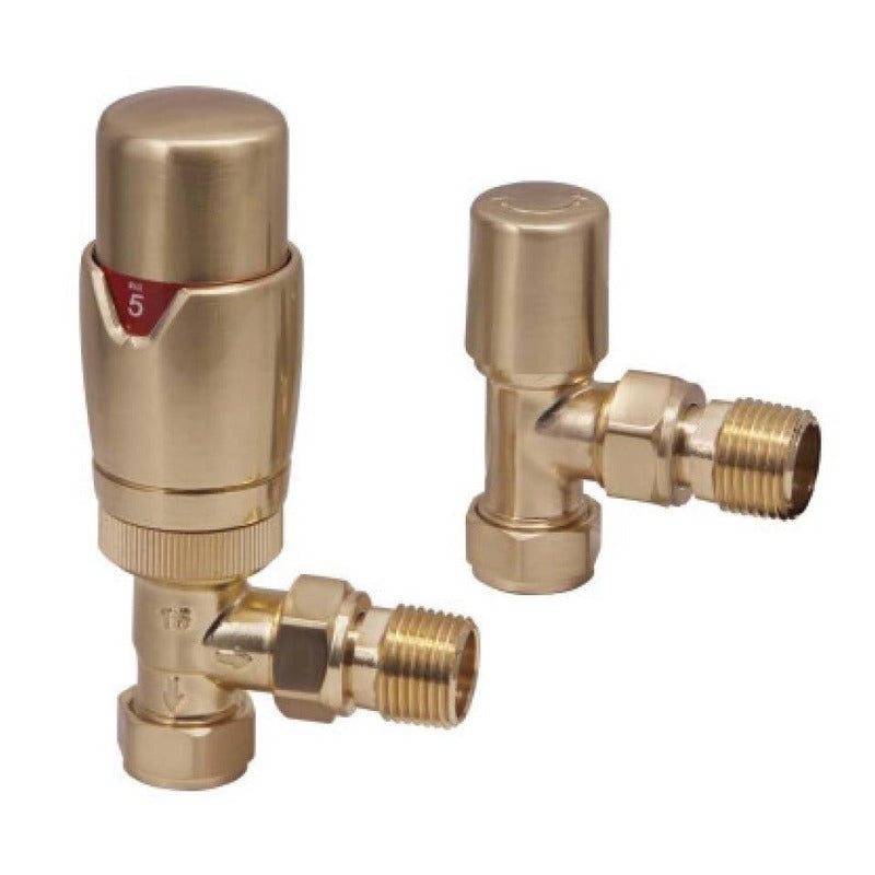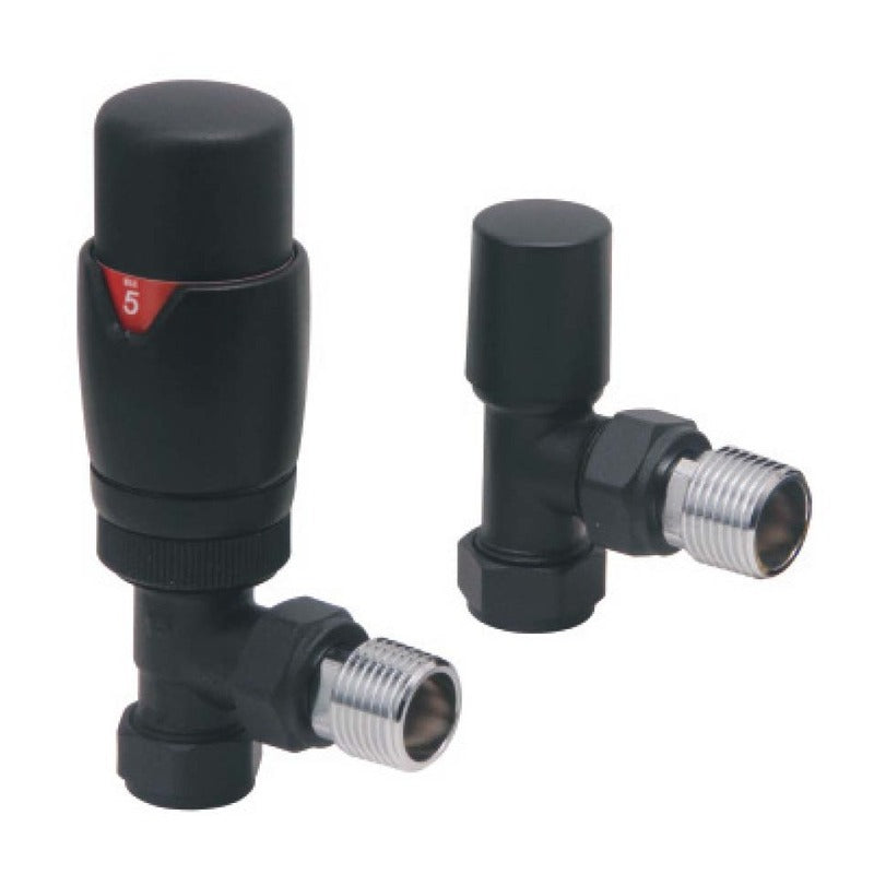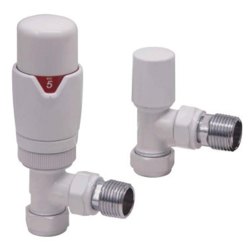 Featuring an angled shape with a contemporary design, these valves not only serve a practical purpose but also enhance the aesthetics of your radiator setup. Additionally, they are equipped with a thermostatic function, allowing you to regulate and maintain your desired room temperature with precision. The connection size, with a diameter of 1/2 BSP, ensures compatibility with standard fittings and provides a secure connection to your radiator system.
